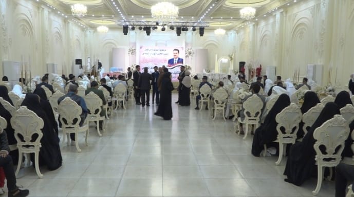 وقال عضو فريق التواصل الحكومي قاسم فرج البديري: إنه "بتوجيه مباشر من رئيس الوزراء محمد شياع السوداني، قام فريق التواصل الحكومي وبالتعاون مع الشركة العامة للأسواق المركزية في وزارة التجارة بالتكفل بتزويج 80 شابا وشابة في حفل زفاف جماعي في محافظة كربلاء المقدسة وبواقع دفعتين".